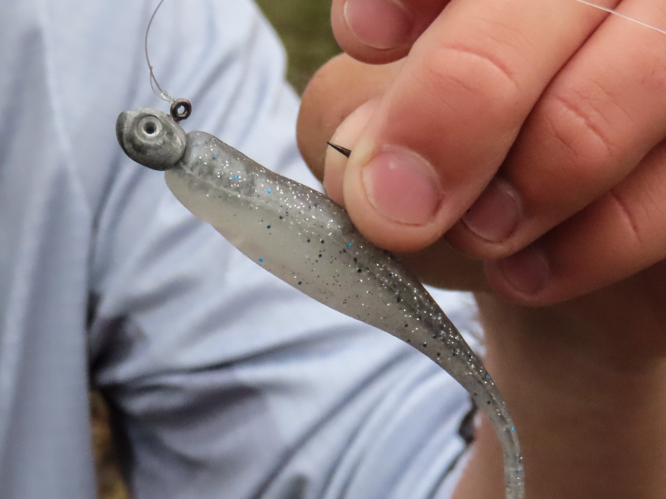 A Crush City Freeloader paired with a 3/16-ounce VMC Hybrid swimmer head was used for the “easy fish.”