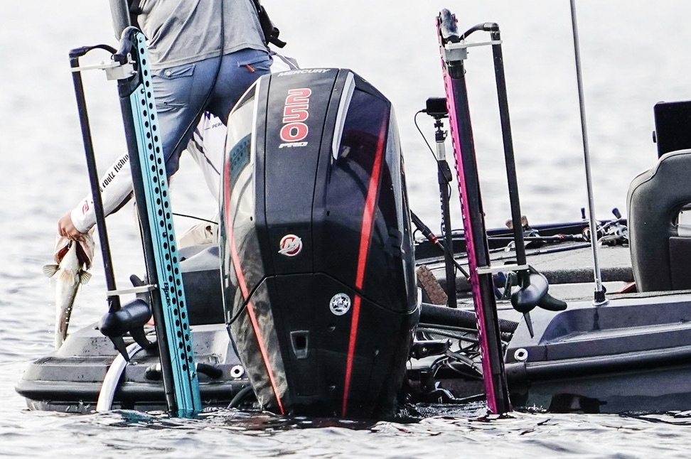 While these electric motors were used by a minority of Elites in 2024, their popularity was certainly increasing. Why? These motors are being used as brakes for boats, primarily when anglers are scanning with live sonar. Competitors who use these extra electric motors will typically have the bow trolling motor on high, scanning for fish. Once a bass or school of bass is identified, the angler will hit the reverse button on the transom-mounted electric motors, which stops the boat in its tracks. This allows the angler not to overrun the fish he has found and effectively target them. Now, Elite competitors will have to illustrate more skill with a single motor when employing this tactic. As with all of the new standardization rules for 2025, B.A.S.S. is making the live sonar game more challenging for those who want to play it.