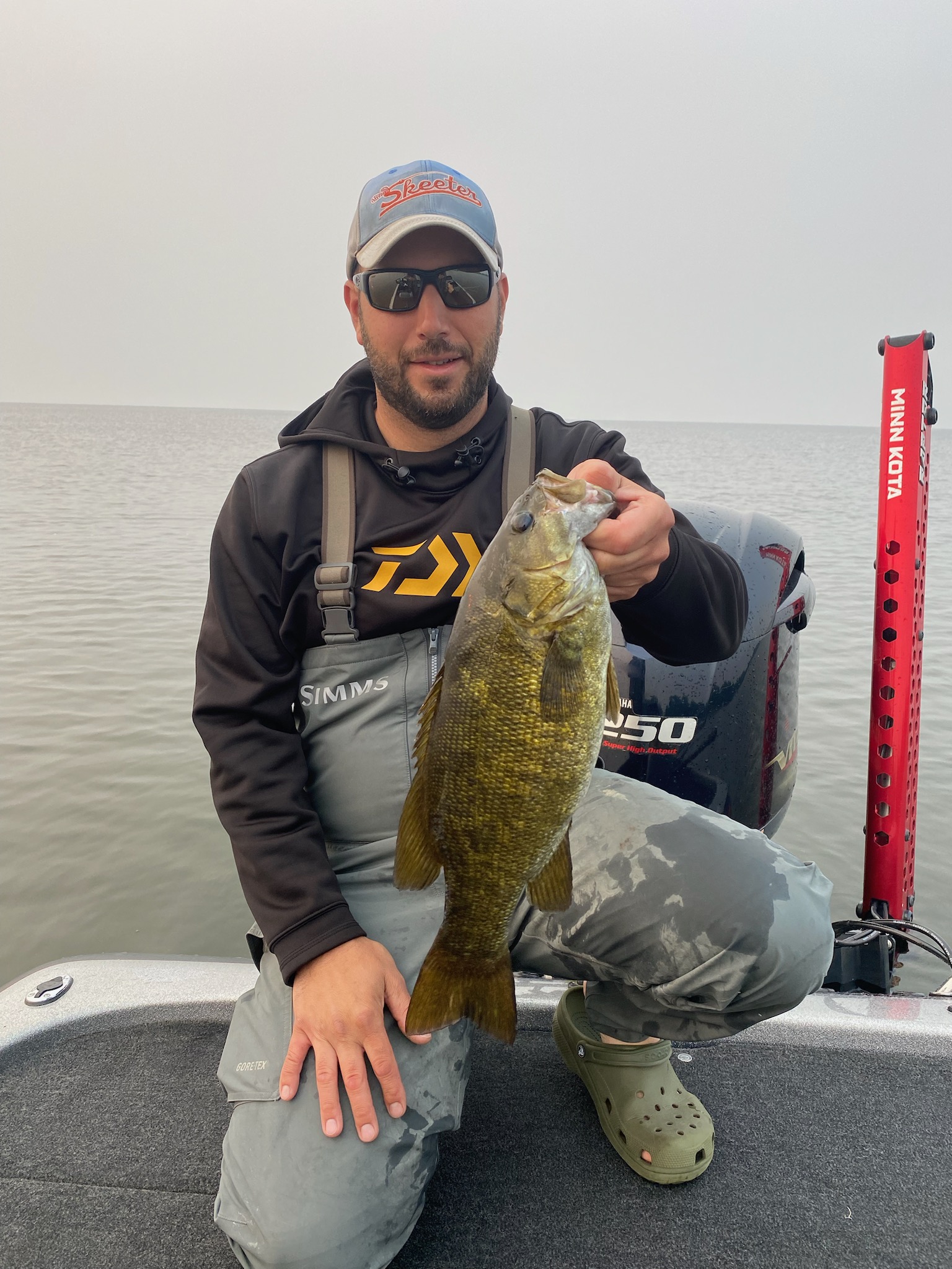 Jay Swanson of team Minnesota catches a good smallmouth ahead of the 2023 TNT Fireworks B.A.S.S. Nation Northern Regional at Lake Winnebago!
