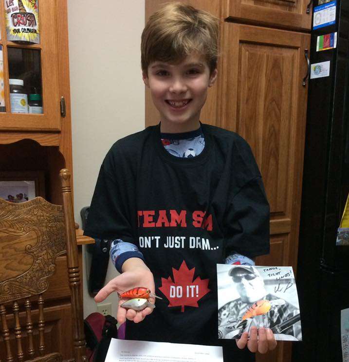 “Thank you, Charles, for your generous gift,” Jason wrote on Facebook after receiving the surprise. “The fact a Canadian made it to the grand stage of bass fishing was a feat many of us dream of, especially a 9-year-old boy. Charles’ gift will adorn the wall of Trevor’s bedroom alongside other mementoes of his fishing idols.”