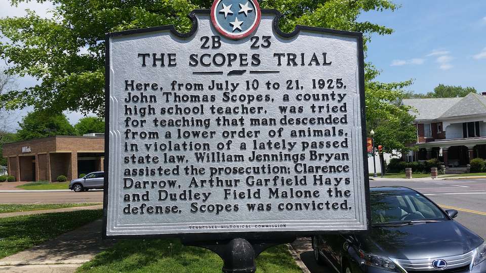 It also was a stunt hatched by a few Dayton citizens to attract publicity to the small Tennessee town. Scopes incriminated himself (though he wasn’t even sure he had taught evolution in the city schoolhouse) and the “Trial of the Century” was set. Two of America’s most famous lawyers (Clarence Darrow and former U.S. Secretary of State and presidential candidate William Jennings Bryan) argued the case in the Rhea Country Courthouse during a steamy fortnight in July. The temperature climbed so high inside, that the trial was moved outdoors.