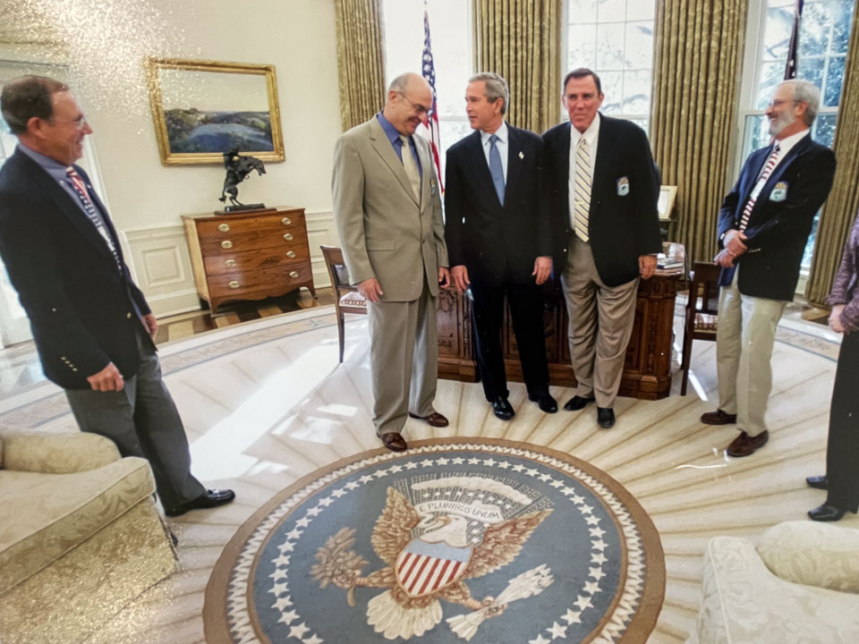 In 2004, Day went on a week-long barnstorming tour of Iraq put together by Scott, the idea being to personally thank the front lines military for serving the country. The trip began in the Oval Office, where Day accompanied Scott to meet President George W. Bush.