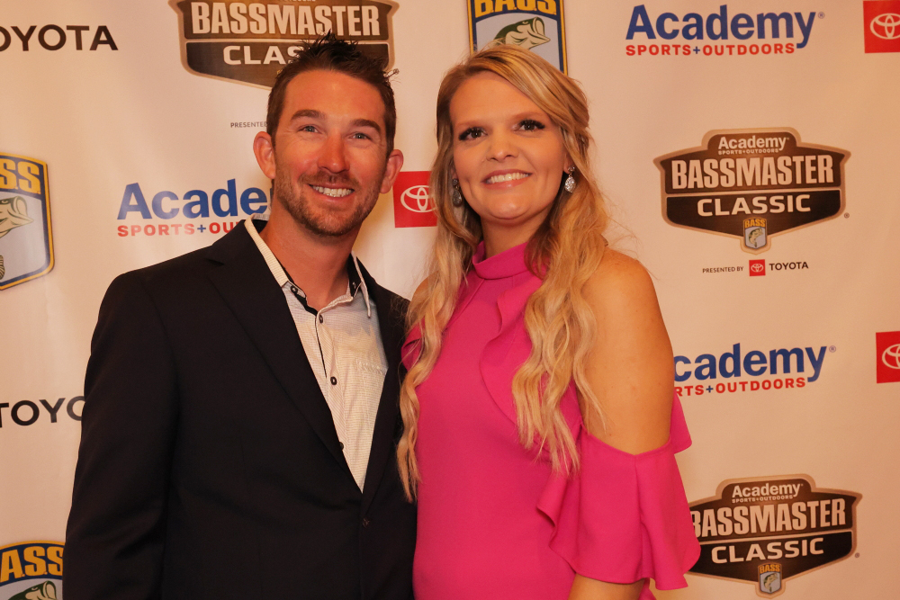 Tiffanie Palaniuk was stunning in a gown purchased in an impromptu trip to the mall last week, but noted that nothing else about her life is haphazard. While the AOY title is a repeat, she noted that her husband – reigning Bassmaster Angler of the Year Brandon – was “probably the most diva stylish person in our family.” He wore the same suit that he donned the last time he won the award. What has changed, however, is the fact that they’re married, and now have a daughter – who looked equally dressed up in an Amazon purchase. Daughter Kora, attending her first Classic, was clothed after nap time, and miraculously made it through the entirety of her dad’s speech, which stretched out past the unofficial bedtime.