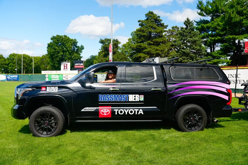I love my truck, I spend more time with it than anything else… well besides my boat and of course, fish. My truck is the place where hours of phone calls, tournament days start and end, countless ideas, and “cardio” (getting in the car and turning on the radio) happen, with laughter from the BassmastHER girls, a safe space for my gear, so many miles from the lake to the beach to the mountains through the snow and extreme heat, my truck gets me where I need to go.