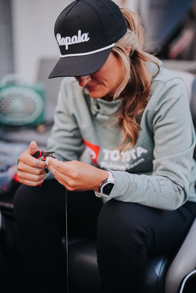 When switching baits/re-tying, I always make sure I put everything back into my tackle bag and zip everything up. Along with this, I keep the rods I’m not using in the spot designated by the boater. This is helpful when your boater decides to move to a different spot. You never want them to have to wait on you. If your gear is organized and secure at all times, when they say you’re moving, all you have to do is put your rod away, strap them down, and throw your life jacket on. This may sound small, but tournament time is precious and I’ve had numerous boaters tell me how much they appreciate this.