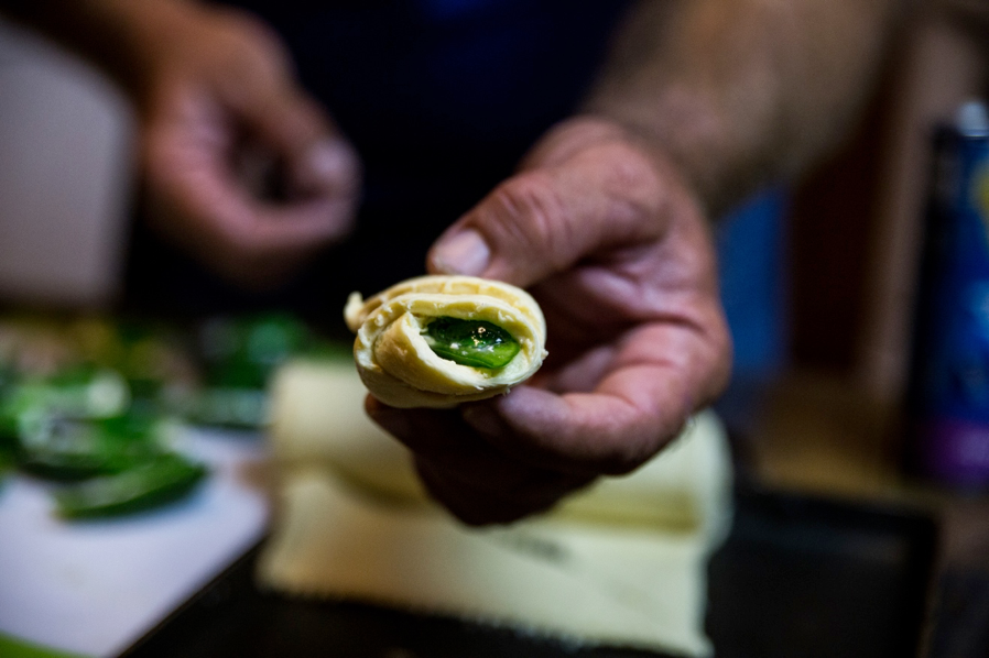 Ingredients: Half dozen (6) jalapenos, Pillsbury Grands! crescent rolls, Philadelphia cream cheese, Braswell’s green pepper jelly.