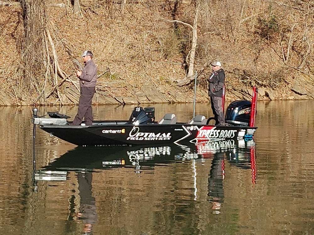 So far this morning we have seen four competition boats and three of them have been aluminum — John Cox, Jason Christie, and now Caleb Sumrall. Not sure if that is coincidental or if it reflects the area we are in somehow.