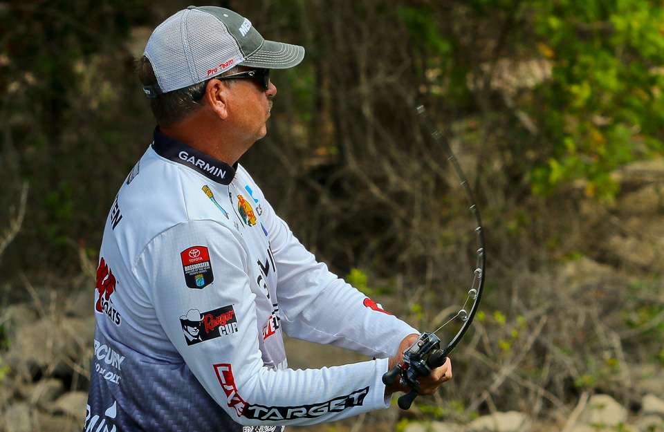 Todd Auten’s best finish in his last four Elite Series tournaments has been 52nd place. That offset a solid start to his season. But Auten is in the process of rescuing that. After finishing Day 1 in 51st place with 6-1, he jumped to 16th yesterday with a limit weighing 13-10. And, according to BASSTrakk, Auten is having the best day of anyone of the 35 anglers left in this competition with a 14-pound, 8-ounce limit, which has him in fifth place.