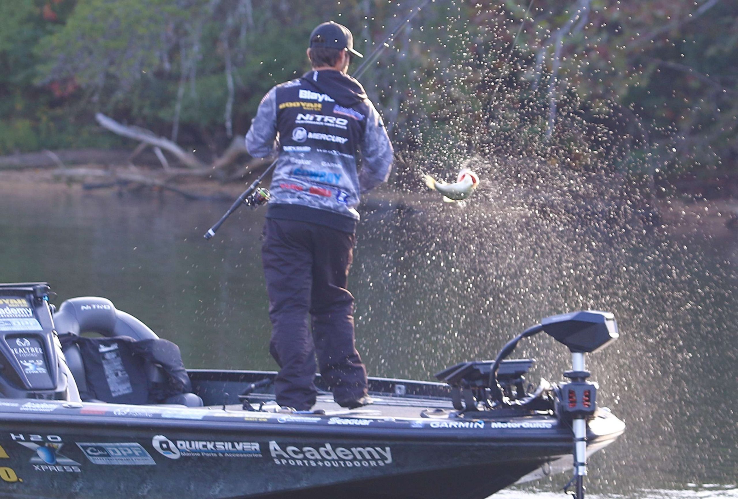 Stetson Blaylock is currently on the lower end of the lake in short creek where there is a large school of bass and Shad.