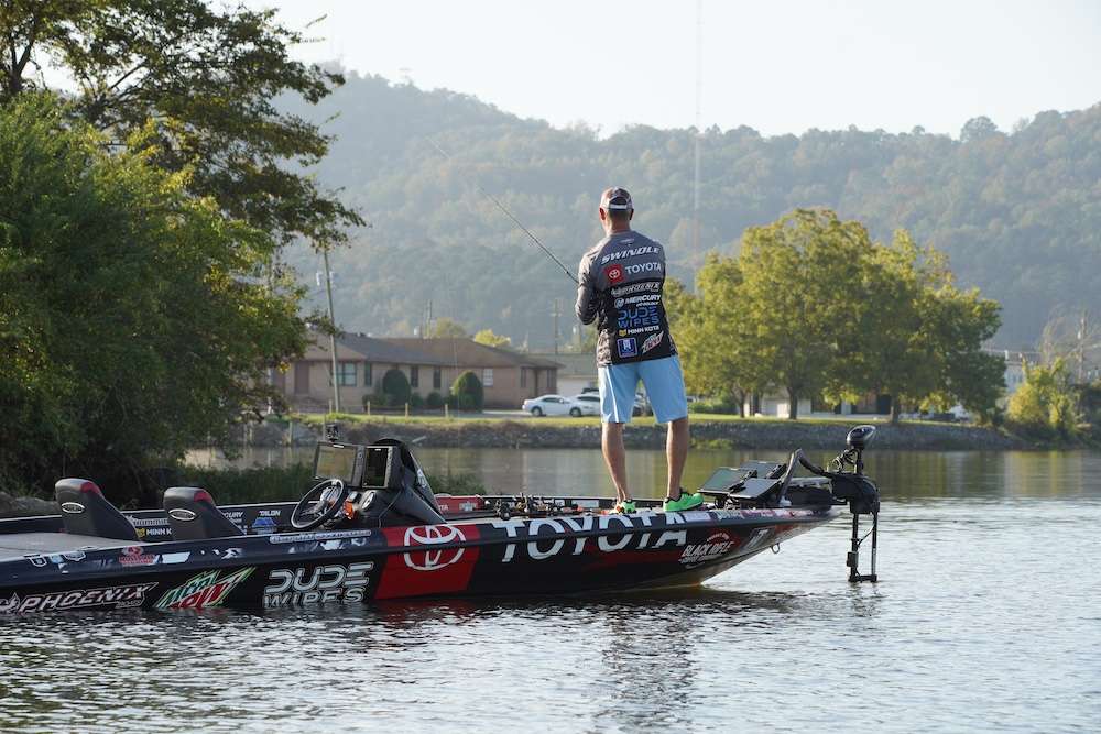 We found Gerald Swindle and while I was worried I had missed his early morning bite putting together the launch gallery, it turns out that I did not. Gerald reports he has one fish for 1 pound. Not the start he wanted, but maybe I’ll get to see some fish catches. He’s working the banks and docks close to takeoff south of downtown Gadsden.