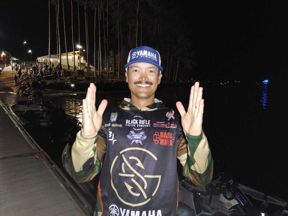 Chris Zaldain was thrilled to see the breeze this morning, which he believes will set up his big bait bite. He intends to go with one rod for as long as he can.