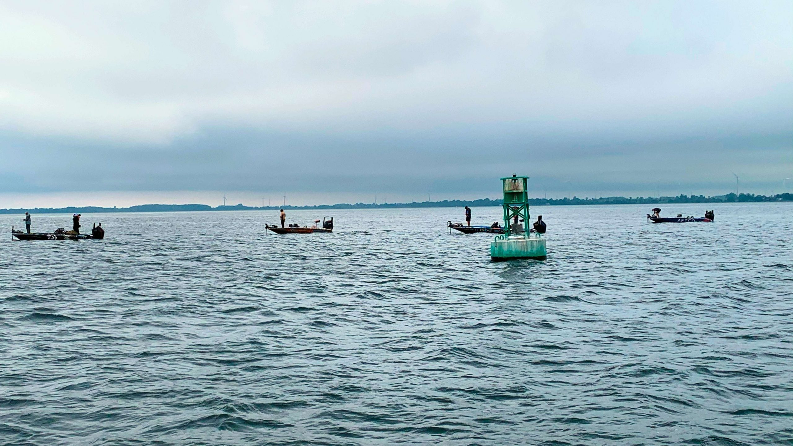 Johnston quickly proves that by boating what appears to be a 4-pound plus smallmouth. As he was landing it the other boats were slowly passing. It almost looked like those first few moments before a take off as a group of anglers just mills around.