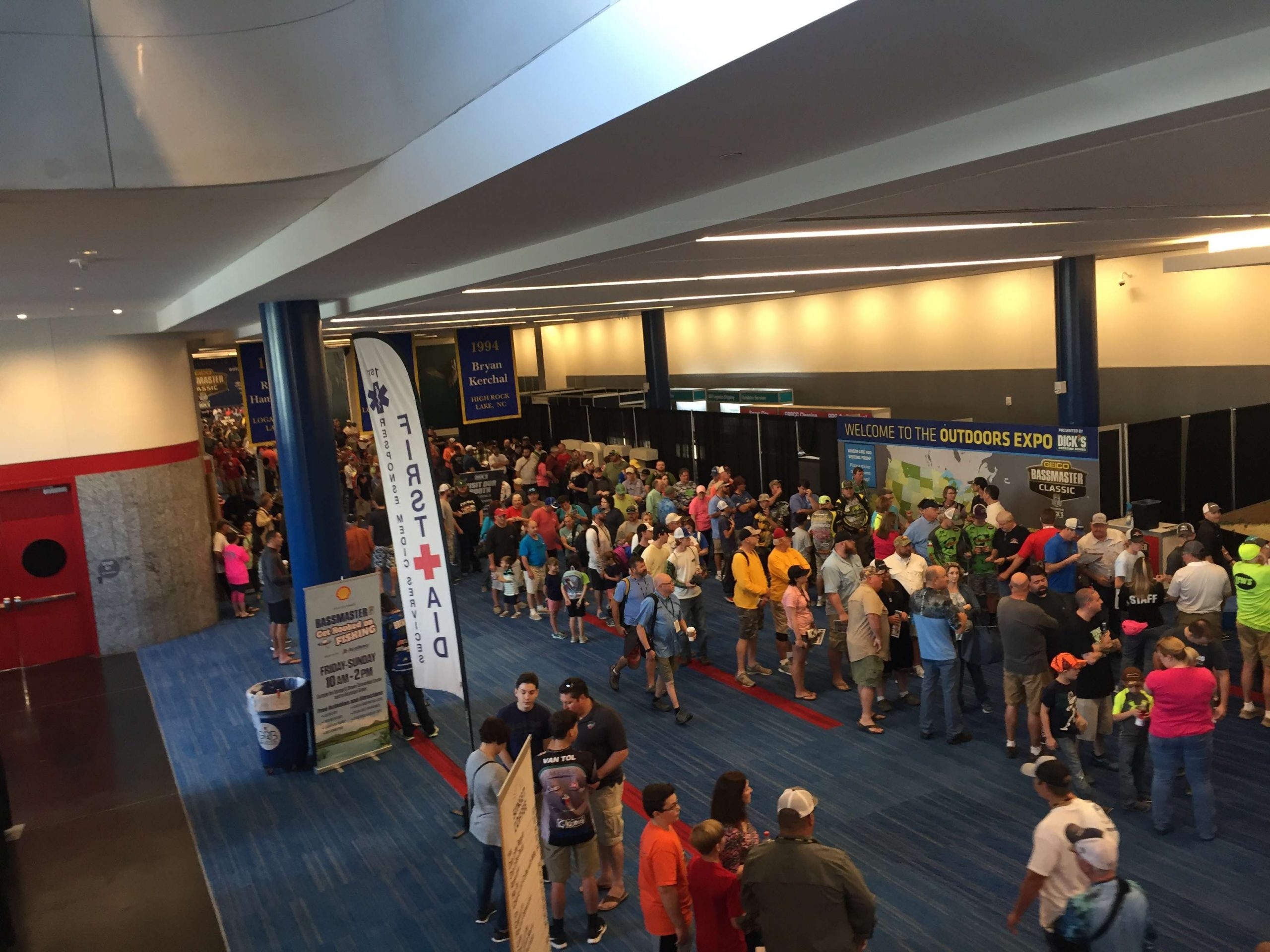 Check this out. This line of fans stretches from the entrance outside to the street. Folks are lined up and ready to enter the Outdoor Expo presented by DICK’S Sporting Goods. The show at George R. Brown Convention Center in downtown Houston opened at 10 so come on out. I just finished shooting BASSCams and checking out the new products. Those are many.