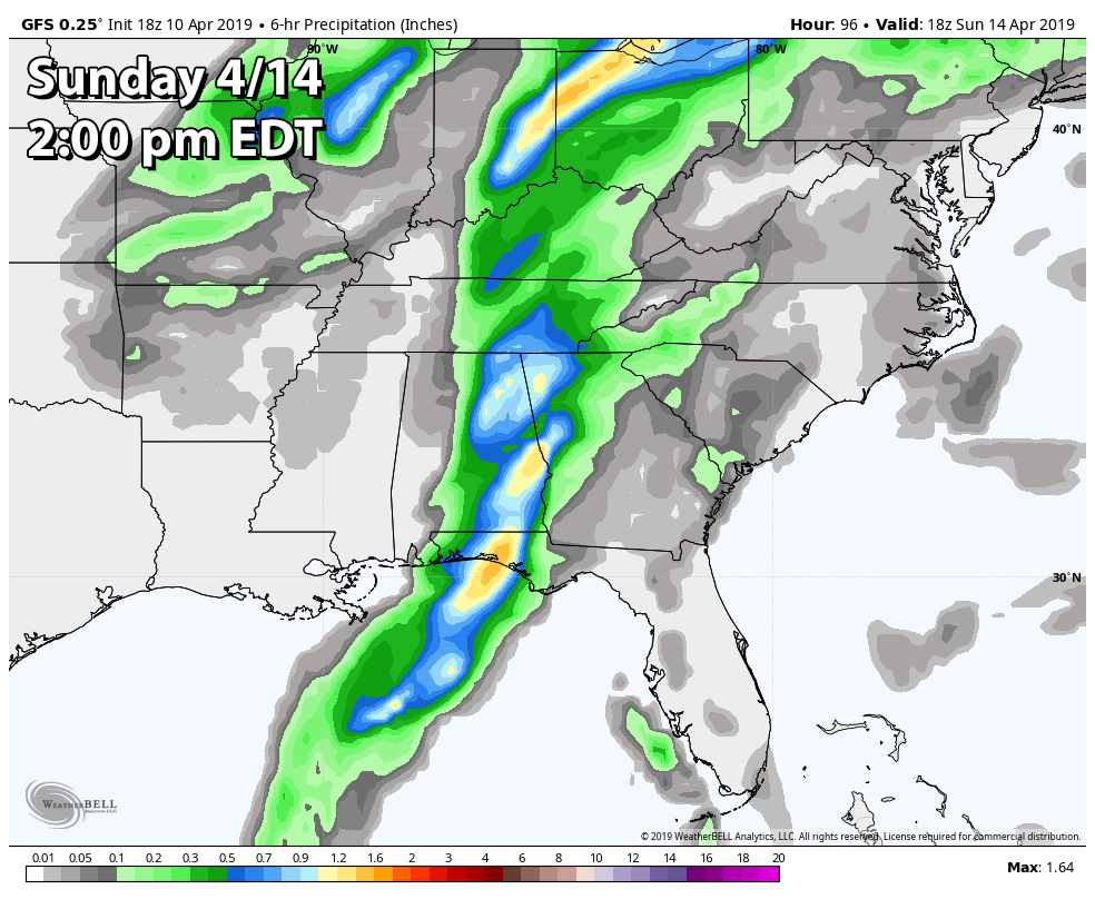 I’ll keep an eye on the forecast carefully, especially for Sunday. If that system just happens to move through Mississippi, Alabama, and Georgia a little quicker than what the models are displaying, we may have increased thunderstorm chances with the possibility of a few strong storms. My next weather update will be out Saturday morning.