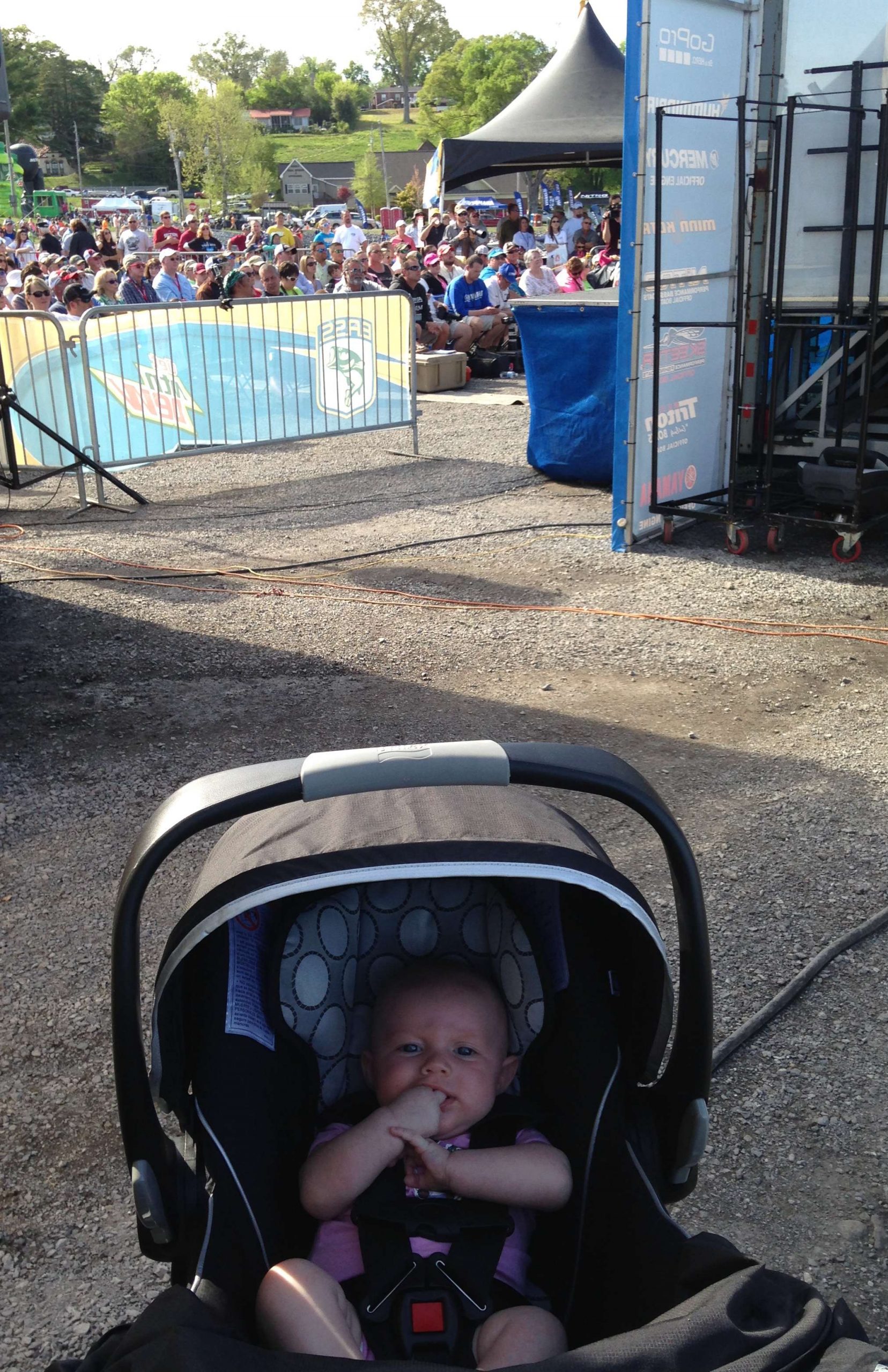 The first of hopefully many weigh-ins for my 3-month old, Lane Mitchell. Despite her appearance in this picture, she had a good time. Her new best friend, Don Barone, came by. I got to show him she’s wearing the latest in fashion, a Tackle The Storm onesie. Last photo is by the man himself. Thanks, Don!