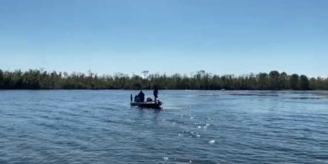 The area that these boats were focusing on was a large flat with submerged hydrilla with isolated patches of Lilly pads.