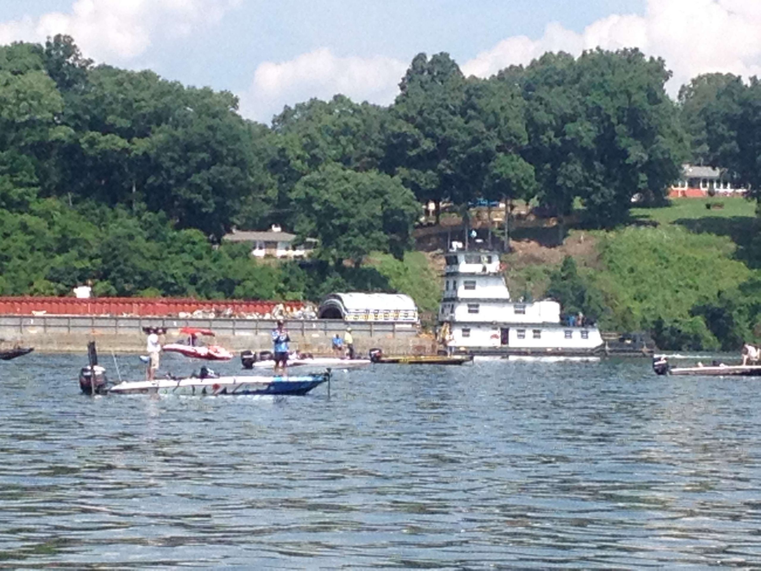Following Jacob Wheeler today has taken us from one extreme to the other. It started with the early morning solitude of the Hiwassee River and has now taken us to the Chickamauga rush hour. Wheeler's followers seem to be increasing by the hour and a huge barge just pushed its way right through the middle of them.