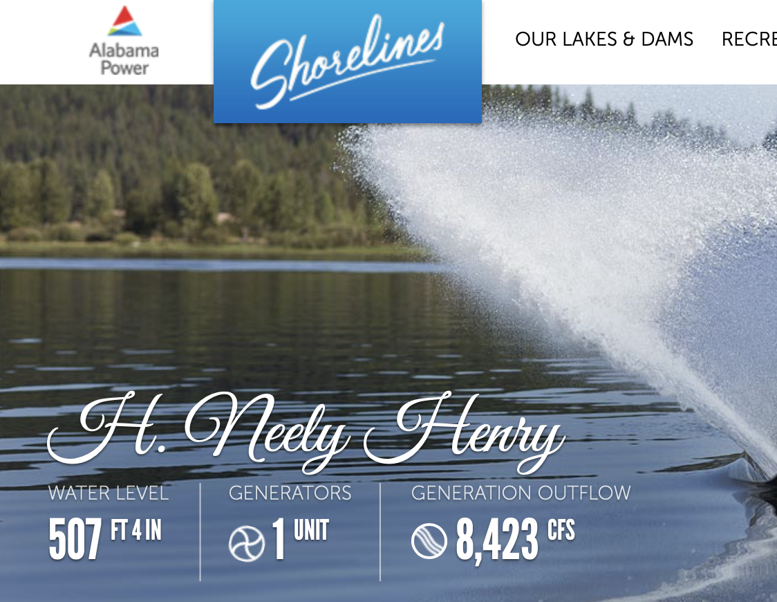 Just about the same time as yesterday, Alabama Power has turned on one generator each at Neely Henry and Weiss dams, respectively. Weiss is generating 8,294 CFS.