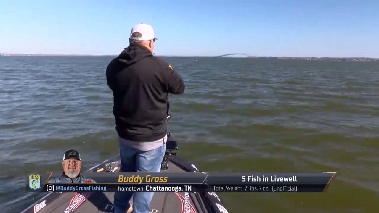 Meanwhile, Gross continues to diligently fish a pattern that yielded a pair of 5-pounders this morning. He has room to cull, so a couple more big bites could push him across the finish line.