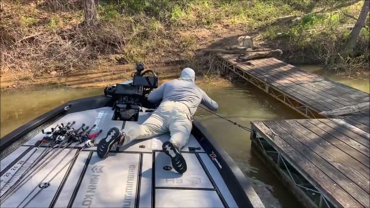 Harvey Horne had to lay down on his belly and reach over a cable dock to land a bass earlier to day, and it was worth the effort. Horne, the 43-year-old Elite Series rookie from Bella Vista, Ark., hooked a 4-pound, 10-ounce largemouth bass under the walkway to an old dock about 11 a.m. The video below says it all.