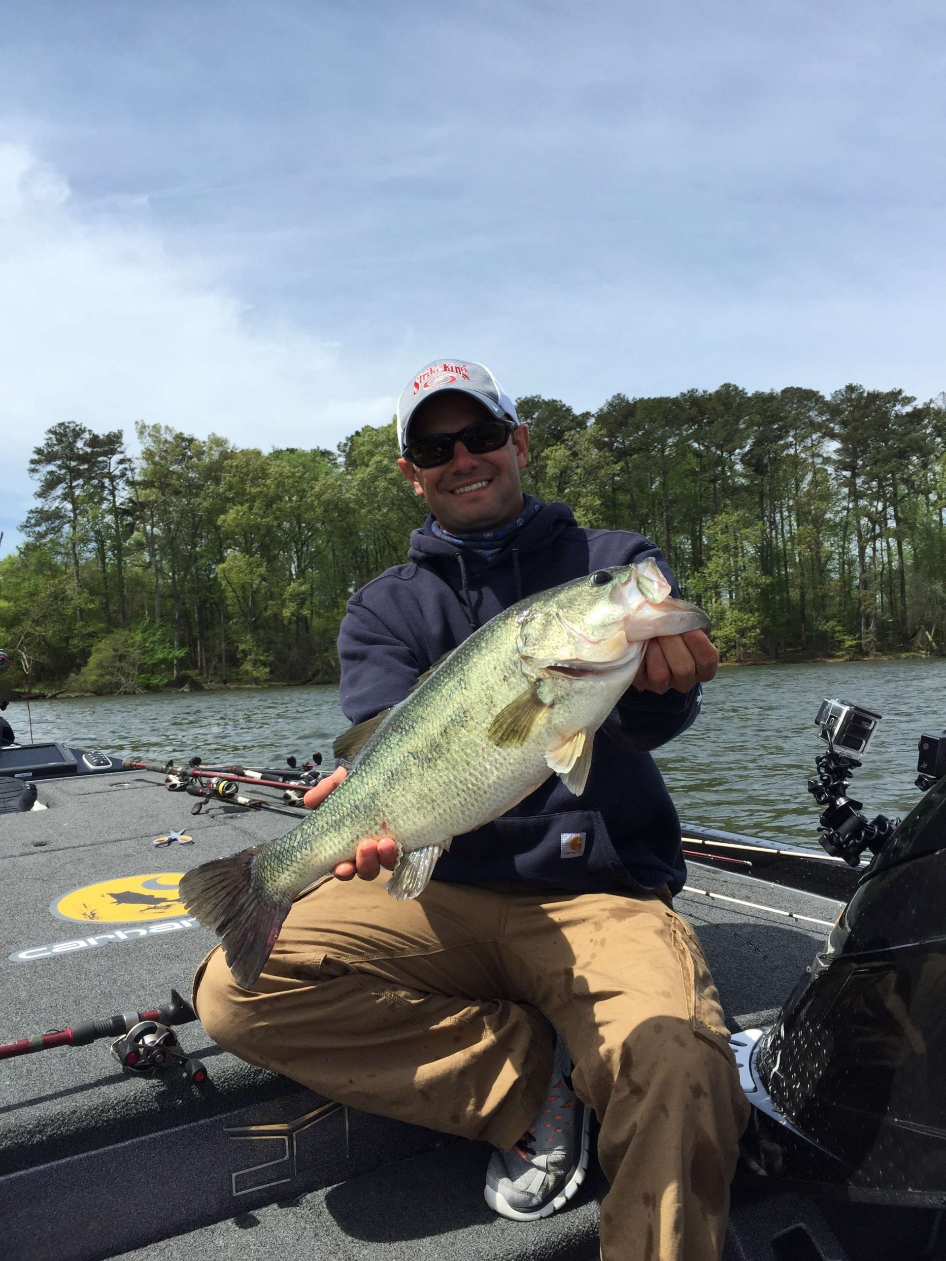 We ended up with Matt Lee, who says it was going real slow until 5 minutes ago when he caught a real nice keeper. Looked like 5 pounds at least. There's a few others in this area, including Kevin VanDam. We are going to stay on Matt for a while, and see if he stays hot.