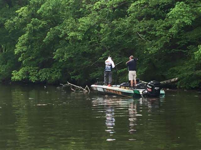 Gary Klein made a long run up the Elk River to Anderson Creek where he caught a two pounder. That’s four bass in the livewell for 6-4 according to BASSTrakk. That puts him mere ounces outside the Top 12. If Klein can fill out his limit he may be fishing on Sunday. He’s now moved back down to the Browns Ferry Nuclear Plant area, fishing slowly along the bank. He’s still in this thing.