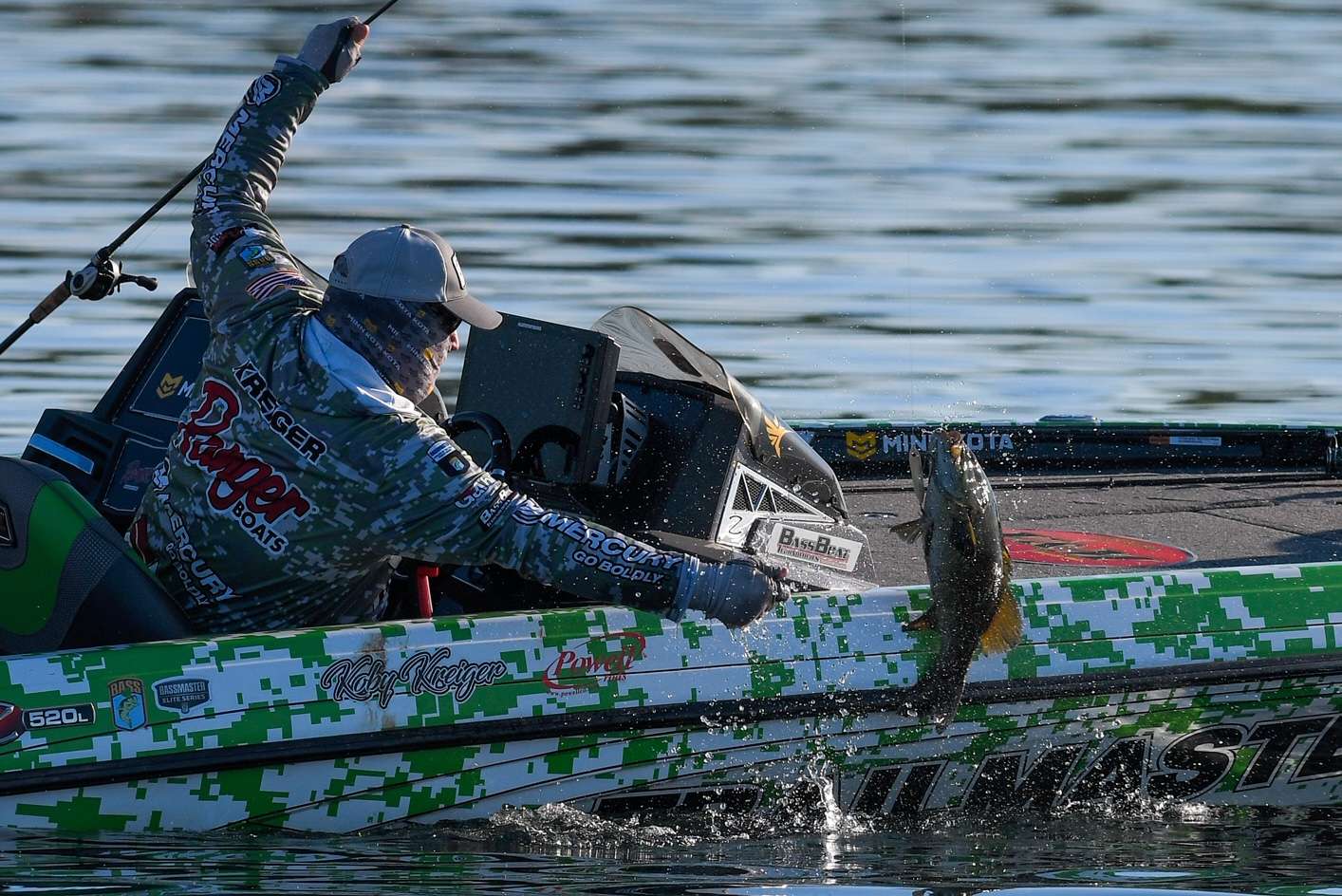 And he’s already put two bass in the boat for more than 7 pounds. His largest is a 4-pounder that walloped the angler’s topwater and have an aerial performance at the boat.