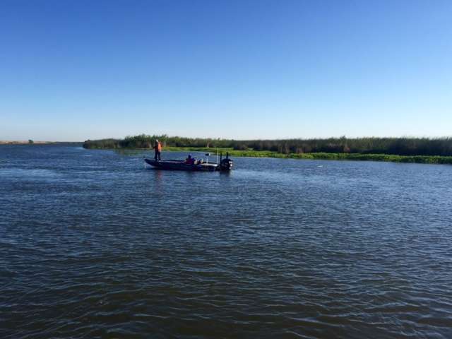We caught up with Jeff Kriet about 20 minutes from B & W Marina, where Garrick Dixon and I launched this morning. Kriet had two keepers in the livewell for about 5 pounds. We watched him lose a bigger fish right next to the boat.