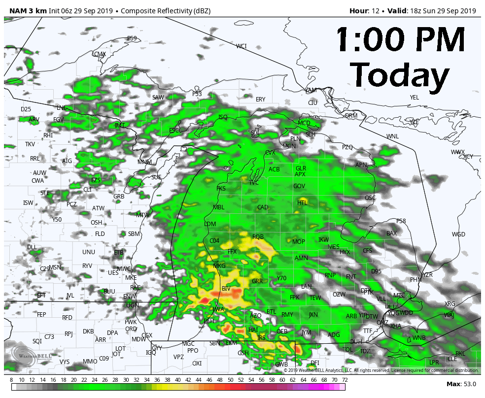 We’ll stay dry throughout the morning and into the start of the afternoon hour, but rain chances will start to creep up after 1:00 pm. Skies will start partly to mostly cloudy with temperatures around 56 degrees at take-off. Clouds will increase during the day and the daytime high will be around 65 degrees. It will be a breezy day at times as winds will be out of the northeast to east at 10-15 MPH with gusts up to 20 MPH at times. Dewpoints will stay in the mid-50s and the chance of rain tops out around 30% before the end of the fishing day.