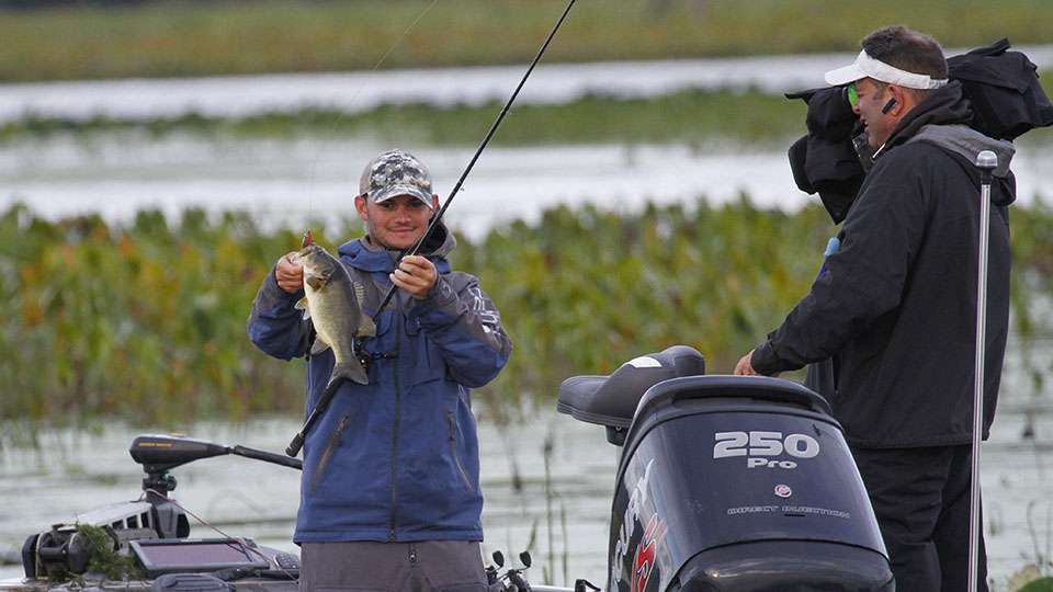 We, and about five other boats, are following Jordan Lee through the maze of channels. I wasn’t here yesterday, but I understand he’s hitting some familiar spots. And it’s paying off, with two three-pounders and a couple smaller fish he will expect to cull later. As I type this, he finds number five. A two and a half pounder that gives him a limit. Now, it’s time to start upgrading. He’s got to feel good about that at 9 a.m.