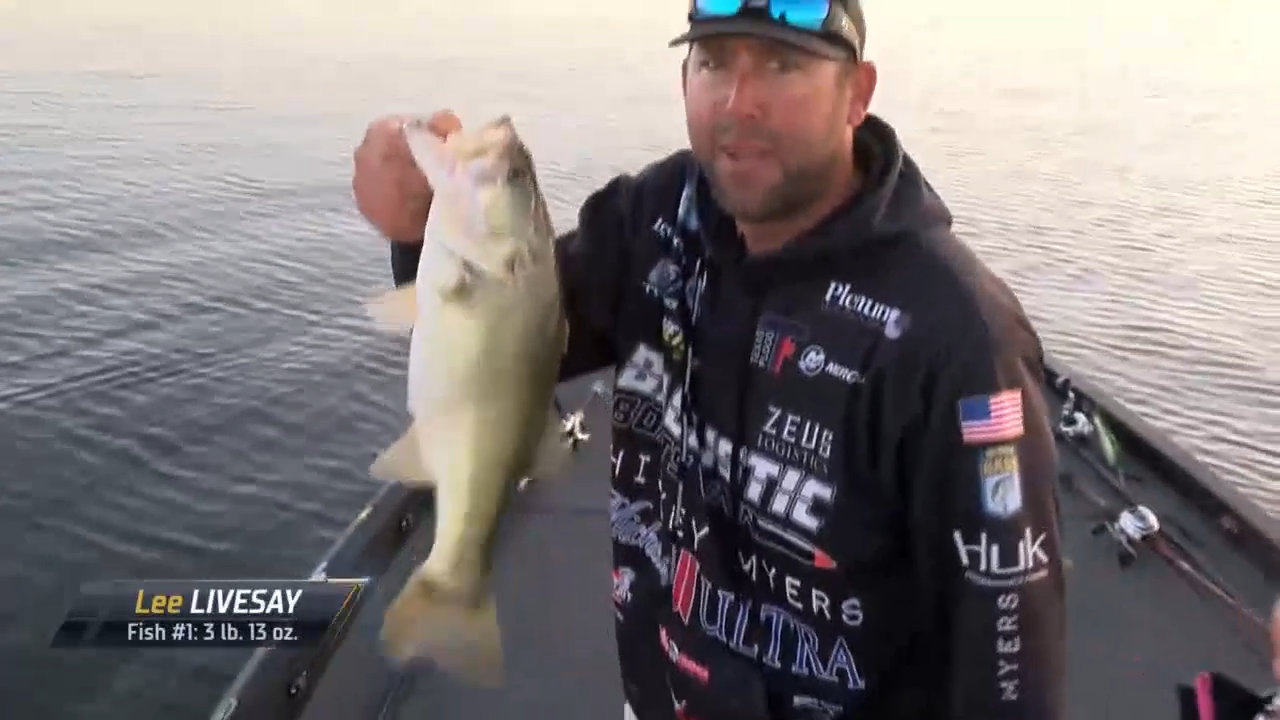 Lee Livesay started the day in 5th place, 6-15 behind leader Brandon Card. He made up the deficit in the first 10 minutes this morning. Livesay caught a 3-13 on his first cast and a 3-10 shortly after. Livesay is looking at bass blowing up on a school of shad.