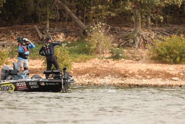 This Championship Saturday morning, he didn’t have any pressure going out to the lake. He is looking for a big one that will give him another ticket to the Bassmaster Classic. He is only looking for a big bites today. So far he has landed two fish for a total of 5.5lb. The search continues.