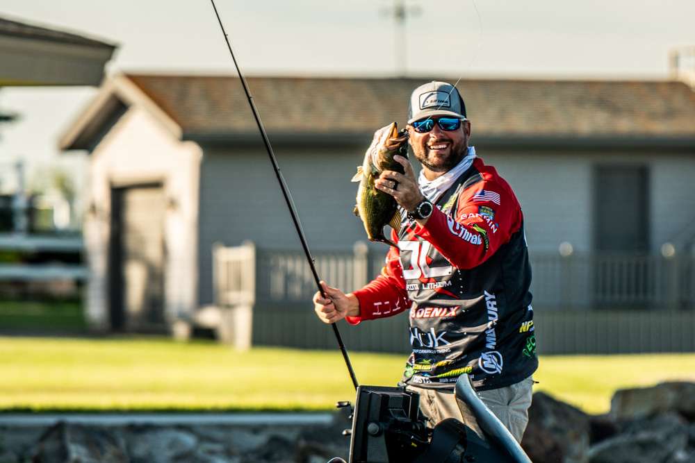 Mosley just put another 4-pound largemouth in the livewell today. He’s got close to 16 pounds, which has him in the top 3 on the unofficial BASSTrakk leaderboard.