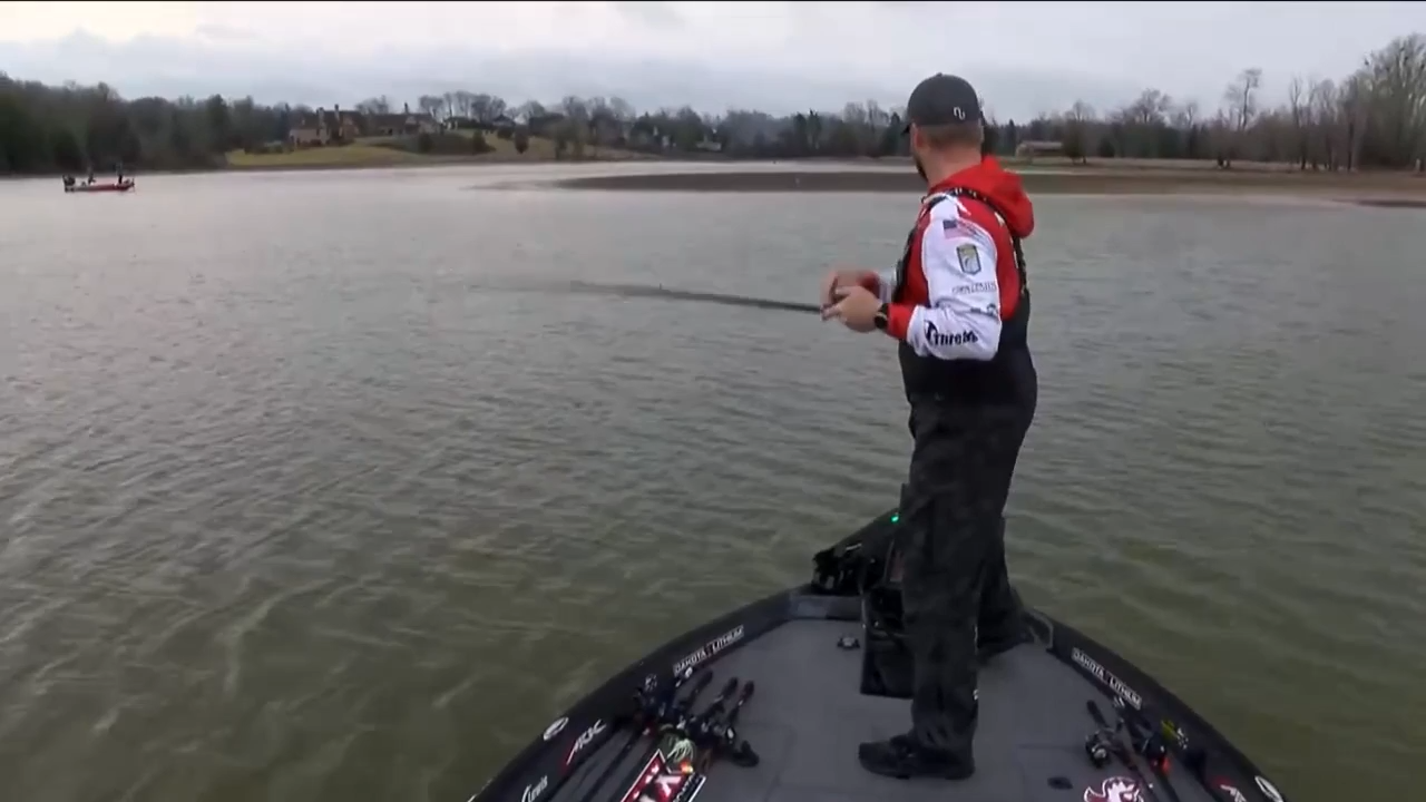 Brock Mosley has had a frustrating morning so far. Lots of swings and misses, especially one big miss. If you’re watching “Bassmaster LIVE,” you saw Mosley miss on what was estimated to be a 4-pound smallmouth bass that came unhooked near the boat. Steve Bowman is following Mosley today. He reports that was the same place where Mosley caught a big smallmouth on Day 1 and the 6-pound, 10-ounce largemouth on Day 2. Mosley undoubtedly will hit that spot again today.