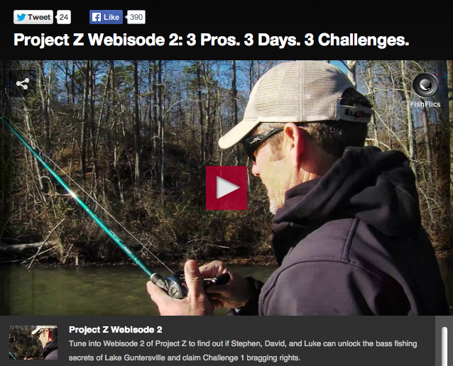 One of the cool things on Bassmaster.com this week is a reality mini-series from Z-Man called Project Z. It’s four videos (2 on the site now, 2 more coming in the next two weeks) shot on Lake Guntersville with Elite series pros David Walker, Stephen Browning and Classic winner Luke Clausen. You can find them here.