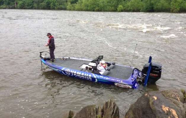 Jared Miller arrived at Jordan Dam a few minutes ago and already has two keepers. That's his boat on the left and ESPN cameraman Wes Miller on the right. The Coosa River...