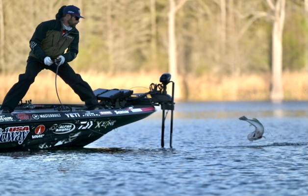B Caleb Kuphall had experienced the most dramatic catch of the day. He was just about to lift his white spinnerbait out of the water to make another cast when...