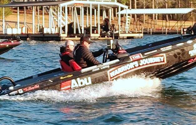 The first boat we came across is two-time defending champion Hank Cherry, in the back of a wind-blown pocket. That is one main difference between today and Wednesday’s final practice...