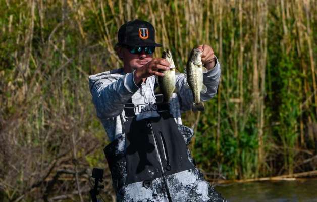 Scott Patton shows off a few nice fish from practice of the Basspro.com Bassmaster Open at Douglas Lake.