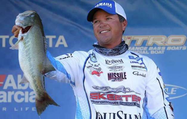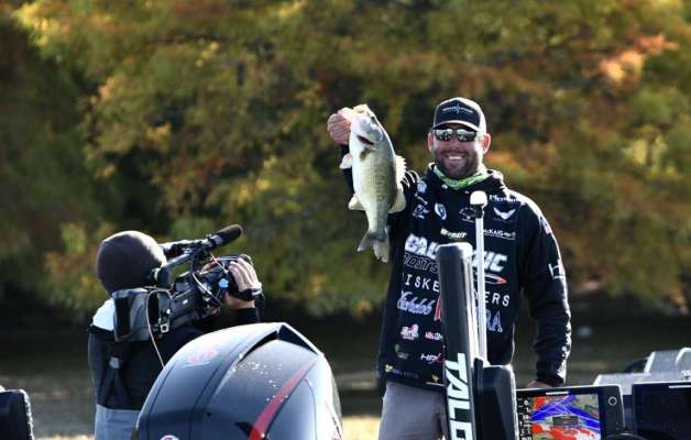 Lee Livesay hammers his first one of the morning only minutes after the fog delay. Throwing a topwater frog across grass mats, this 4-pounder marks Livesay’s largest bass of the...