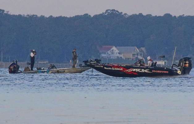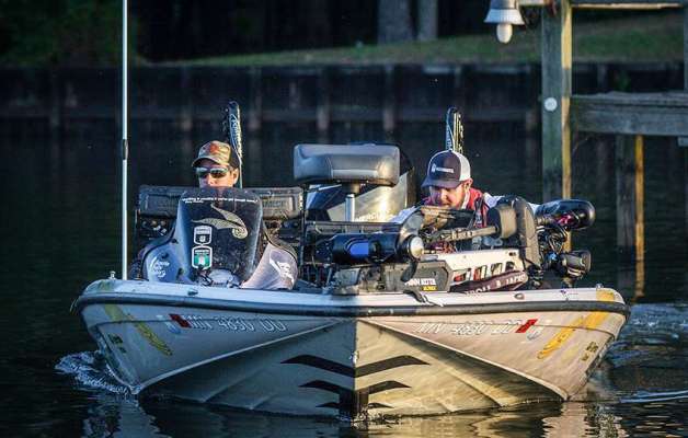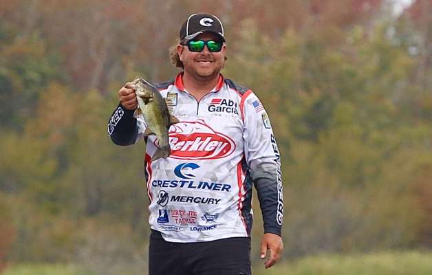 Destin DeMarion is having himself a day! The Elite Series Pro has a limit of fish in the neighborhood of 15 pounds. DeMarion has found favor with the cloud cover...