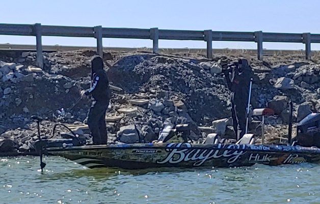 We came back into a semi-protected creek where Bob Downey was fishing a stretch of riprap. Drew Benton idled by him, went through a causeway and started fishing the other...