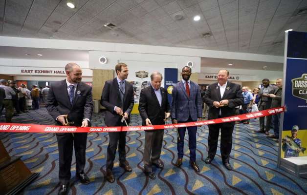 Senator Doug Jones, Birmingham Mayor Randall Woodfin and Academy Sports + Outdoors’ Matthew Banks joined Bruce Akin and Chase Anderson in opening the Bassmaster Classic Expo.