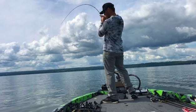 Brandon Lester is working the western bank of Cayuga, slowly picking apart grass beds and scattered patches. He slipped into the Top 10 this morning, and he just upgraded. “It...