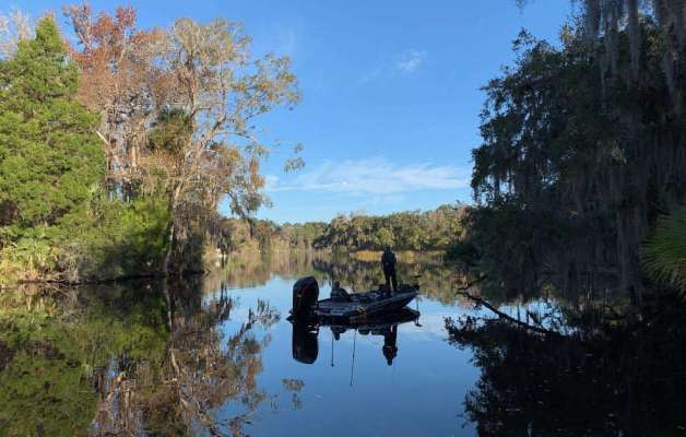 Well, not really. He is set up fishing a pinch-point in a canal, a spot he said was worth some investment after the tournament traffic has settled down. He said...