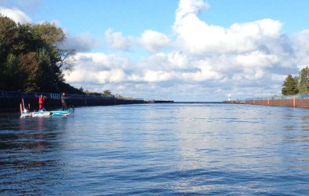 Hank Cherry fished down White Lake to its end, into the canal that connects it with Lake Michigan, as you can see in the photo above. But he didn't stay...