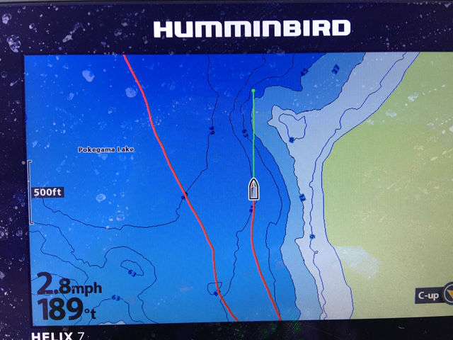 After catching the now famous “fish with a culling clip” Jacob Powroznik has moved back out to his second deep spot.
