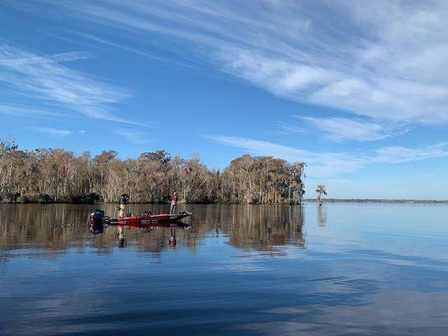 Oops, he just caught another and culled up to about 13 and a half pounds. The native of Palatka gets to relax a bit now and focus on upgrading the size of his Day 1 bag.