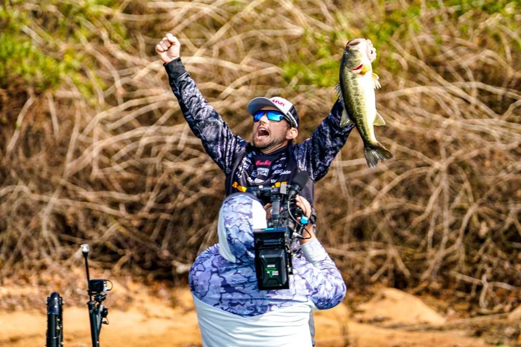 Bassmaster’s Kyle Jessie assured me that Stetson Blaylock showed some emotion earlier today — and provided the above photographic proof of such — but in my experience, he’s one of the most levelheaded, unemotional pros on tour. Not an automaton, but rather a lunchbucket guy who doesn’t wear his emotions on his sleeve.