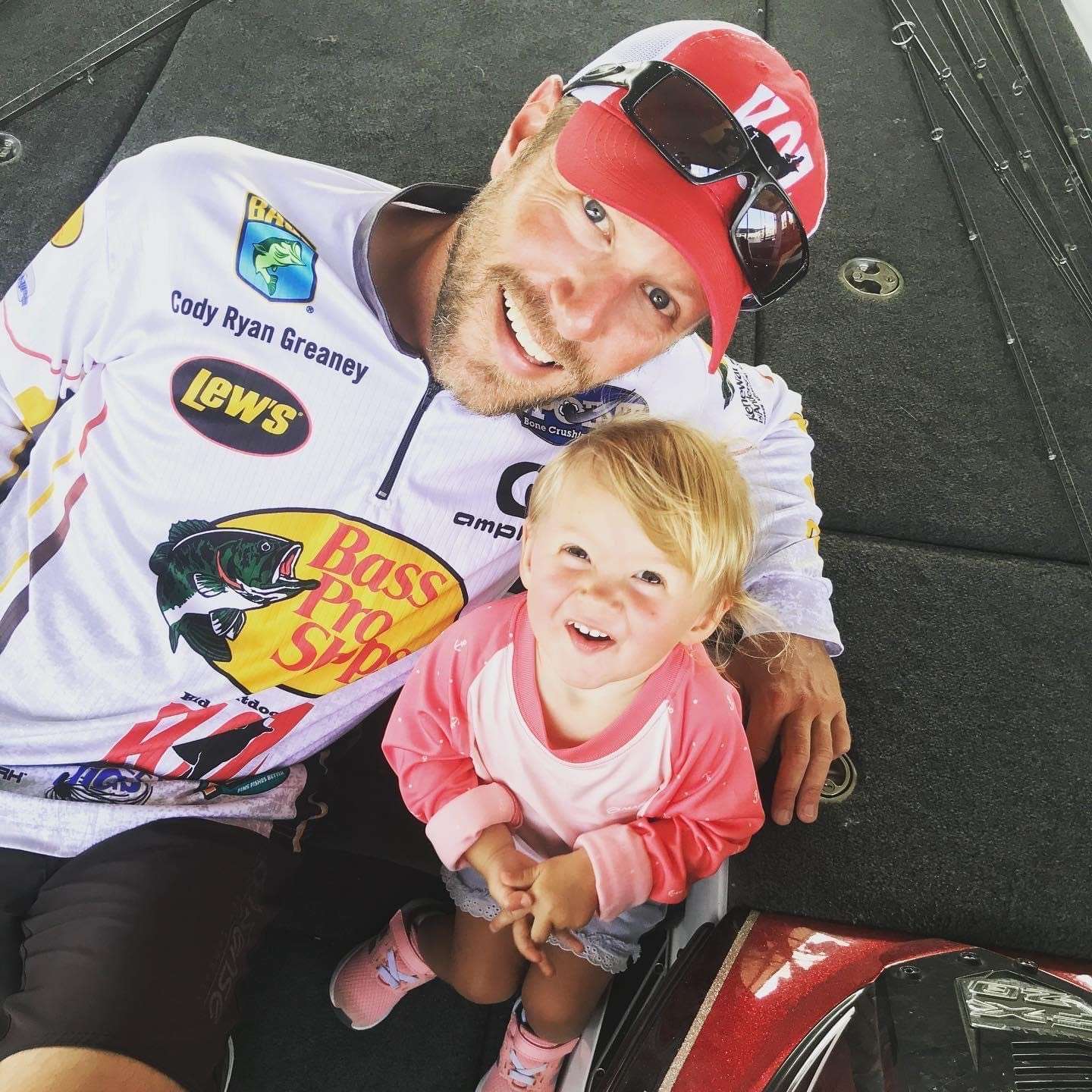 Cody Ryan Greaney gets ready for Day 2 with a little help from his daughter.